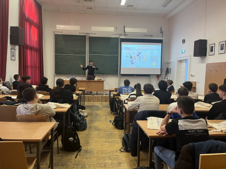 Dr. Hack Szabolcs, az SZTE Fizikai Intézet adjunktusa az előadás keretében az attoszekundumos fizika lenyűgöző világába vezette be a hallgatóságot, megmutatva, hogyan lehet ultrarövid lézerimpulzusok segítségével „lefilmezni" az elektronok mozgását az anyagon belül. Szó esett arról, miként állítunk elő attoszekundumos fényfelvillanásokat, hogyan válik mérhetővé az elektronok időbeli viselkedése, és miért jelentett ez valódi áttörést a modern fizikában – amelyet a 2023-as fizikai Nobel-díj is elismert. Az előadás bepillantást adott abba is, milyen új lehetőségeket nyit ez a kutatási terület a kémia, az anyagtudomány és a jövő technológiái számára.